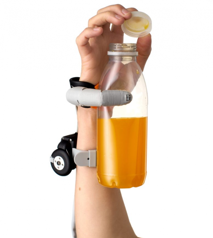 The Third Thumb helping the user to open a bottle. Credit: Dani Clode Design / The Plasticity Lab