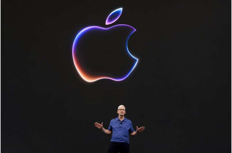 Apple CEO Tim Cook speaks during an announcement of new products on the Apple campus in Cupertino, Calif., Monday, June 10, 2024. Credit: AP Photo/Jeff Chiu