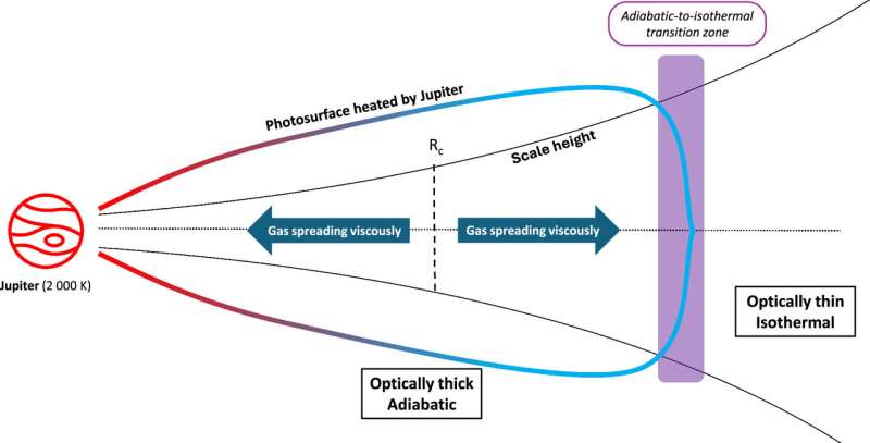 More information: Antoine Schneeberger et al, Impact of Jupiter’s Heating and Self-shadowing on the Jovian Circumplanetary Disk Structure, The Planetary Science Journal (2025). DOI: 10.3847/PSJ/ad9de1
