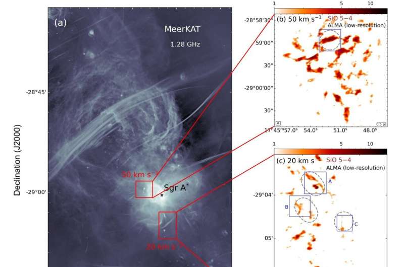 More information: Kai Yang et al, ALMA observations of massive clouds in the central molecular zone: slim filaments tracing parsec-scale shocks, Astronomy & Astrophysics (2025). DOI: 10.1051/0004-6361/202453191