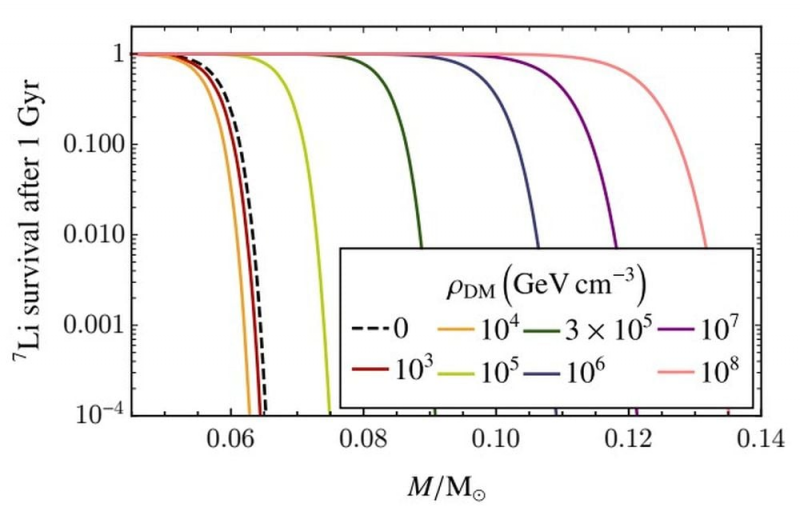 “The detection of lithium-7 in objects heavier than the lithium burning limit would provide evidence for the existence of DM heating,” the researchers write in their paper. “A consequence of this is that DDs can be identified by their enhanced lithium abundance despite a relatively large mass, and old stellar age.” They also show that the amount of lithium retained over time is a function of mass and dark matter densities.