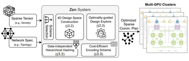 “The previous solution was to send all the data out. But in practice, we observe that the data has a lot of zero values in the ‘talk,'” Wang said. “We need a data structure to represent the communication information correctly.”