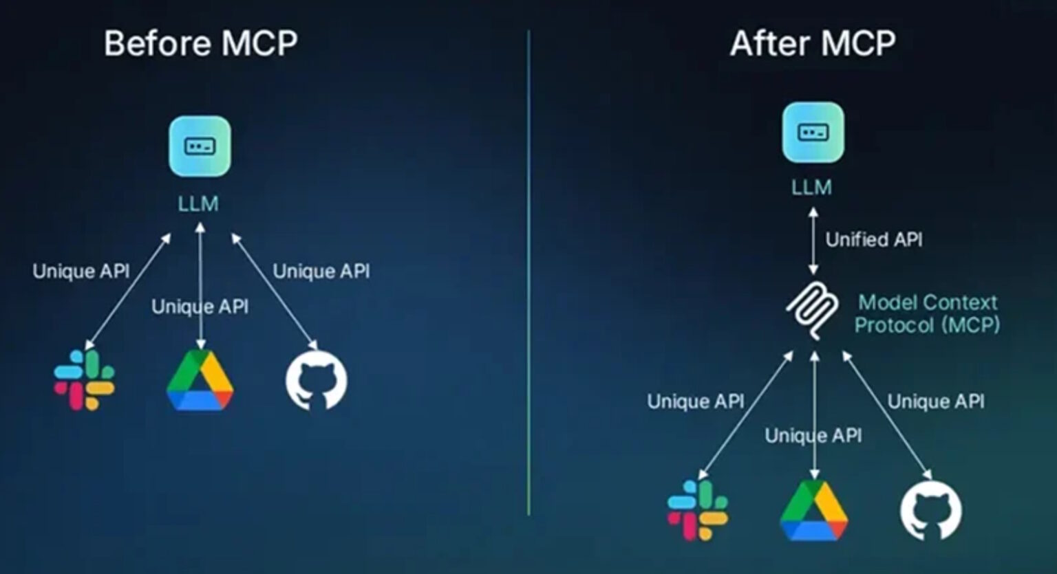 Instead of using multiple APIs, an AI can integrate one MCP and access multiple tools and services, not just one. MCP supports dynamic discovery and interaction with available resources without prior information. MCP also enables predictable and consistent real-time two-way communication that can be dynamically initiated and controlled.
