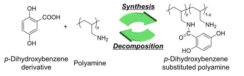 Synthesis and decomposition of p-dihydroxybenzene substituted polyamine. Credit: Polymer Journal (2025). DOI: 10.1038/s41428-025-01085-x