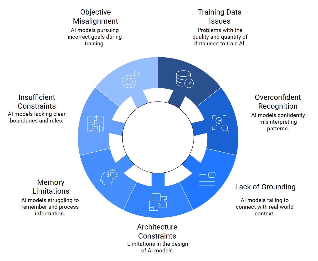 Figure 2. Examples of the many causes of AI hallucinations. (Image: Kanerika)