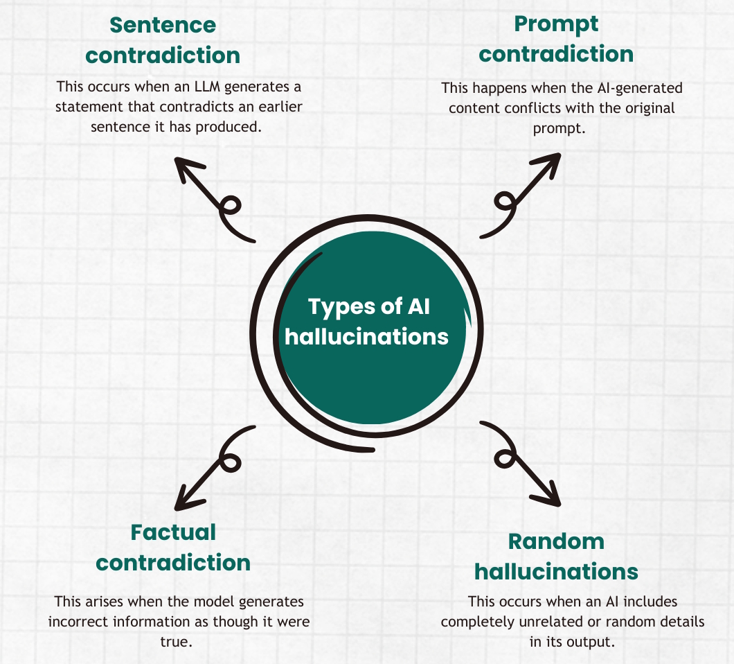 Figure 1. Four common types of AI hallucinations. (Image: Signity)