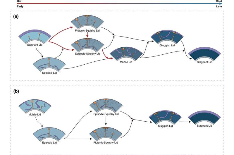 Schematic tectonic evolutionary pathways of terrestrial planets. Credit: Nature Communications (2025). DOI: 10.1038/s41467-025-65943-1