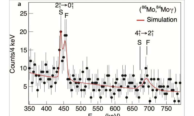 The international collaboration investigated this phenomenon in two molybdenum isotopes: molybdenum-84 (Z = N = 42) and molybdenum-86 (Z = 42, N = 44). These nuclei lie along the N = Z line—an important but notoriously difficult region to study because such isotopes are hard to produce in the laboratory. Using rare-isotope beams at Michigan State University and highly sensitive gamma-ray detectors, the researchers measured the lifetimes of their excited states with picosecond precision.