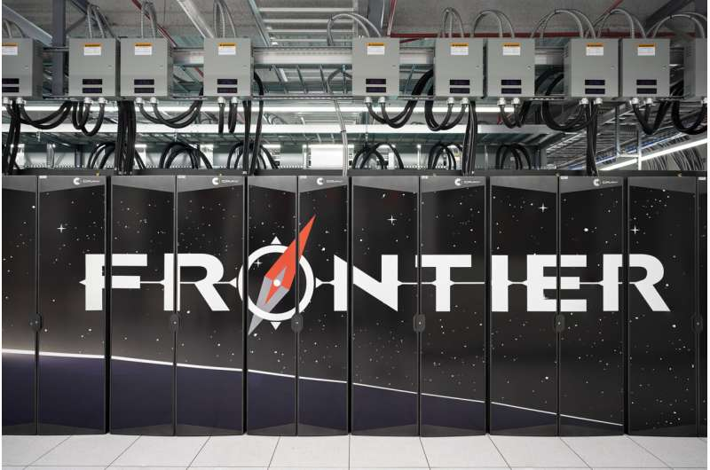 Frontier has a peak performance of 2 exaflops per second—meaning it can perform more than a billion-billion calculations per second—and is currently ranked No. 2 on the TOP500 list of the world’s most powerful supercomputers. Credit: Carlos Jones/ORNL, U.S. Dept. of Energy