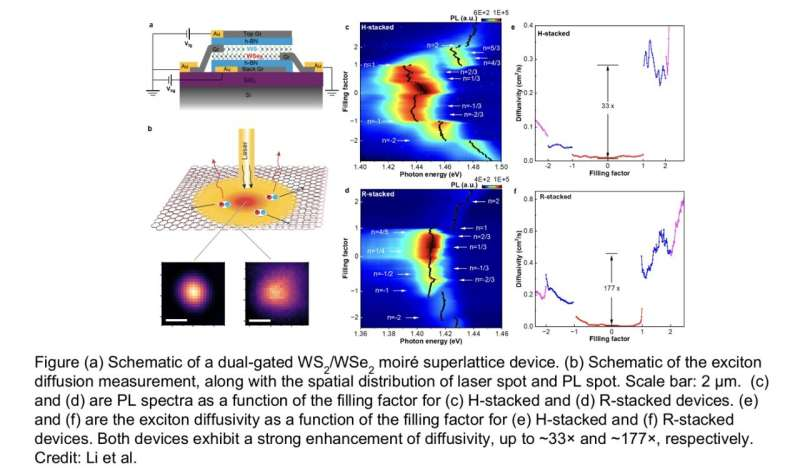 More information: Li Yan et al, Anomalously enhanced diffusivity of moiré excitons via manipulating the interplay with correlated electrons, Nature Communications (2025). DOI: 10.1038/s41467-025-65602-5.