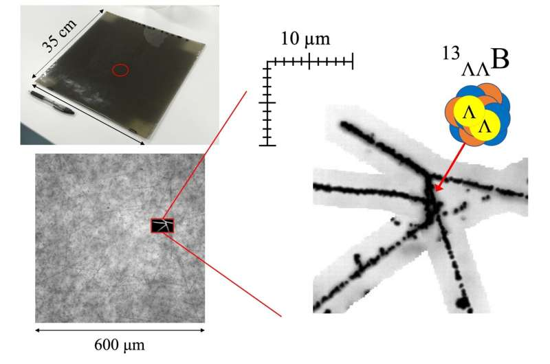 Emulsion plates used in the experiment and images of the emulsion plates captured using an optical microscope. Credit: Adapted from Nature Communications (2025). DOI: 10.1038/s41467-025-66517-x