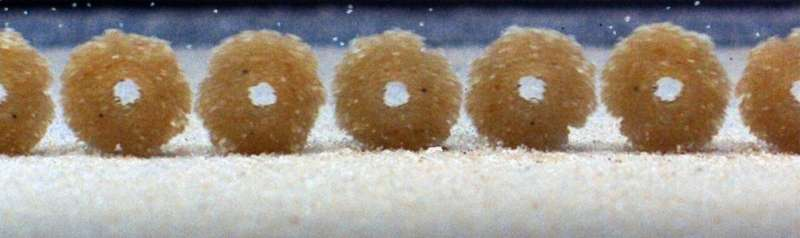 Doughnut-like sandballs originating from raindrops impacting sloping sand hills. Credit: Penn GEFLOW Lab