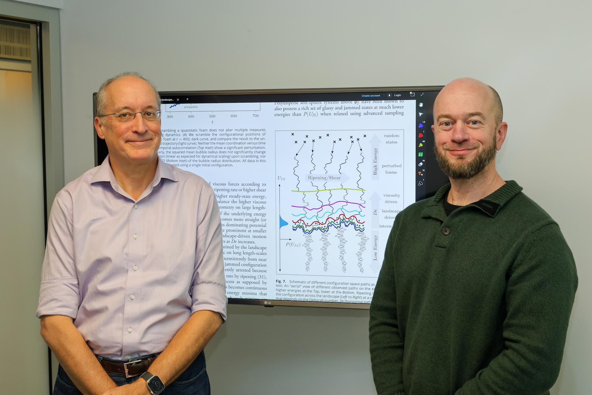 John C. Crocker (left) and Robert Riggleman (right) spent years investigating the mathematics that describes how the bubbles in foam move — and found that it mirrors how AI systems learn. Credit: Bella Ciervo