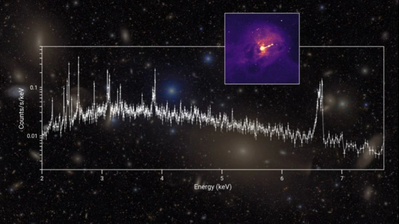 In one of the studies, XRISM zoomed-in on the galaxy M87, at the heart of the Virgo Cluster. It’s about 53 million light-years away, which is close for a galaxy. M87 has a supermassive black hole that’s also referred to as M87. XRISM’s observations showed powerful turbulence near the SMBH, the strongest ever measured. But XRISM also showed something else.