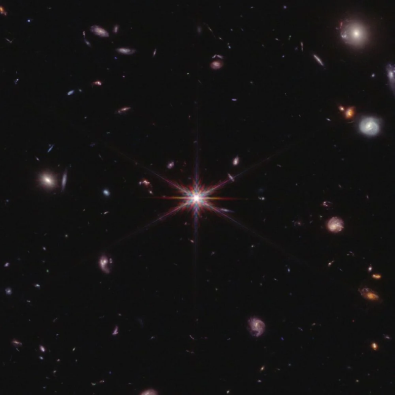 This is a JWST NIRCam image of Quasar SDSS J0100+2802 and other distant galaxies of various types. SDSS J0100+2802 is a hyperluminous quasar that’s 40,000 times more luminous than all the stars in the Milky Way. That overpowering energy has far-reaching consequences. Image Credit: By ESA/Webb – https://esawebb.org/images/EIGER1/, CC BY 4.0, https://commons.wikimedia.org/w/index.php?curid=170756442