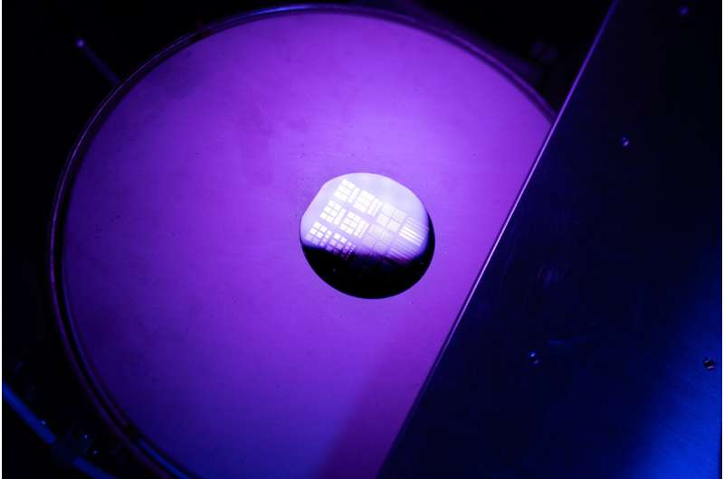 A view of a section of the wafer held in position by the probe station. Credit: David Baillot/UC San Diego Jacobs School of Engineering