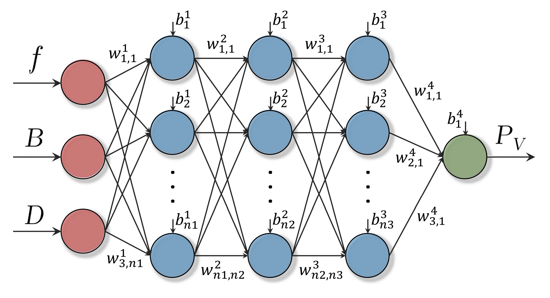 Figure 2 shows the structure of a 4-layer feed-forward NN (FNN) with three inputs (f, B, D) and one output, PV (core loss), used by some of the competitors.