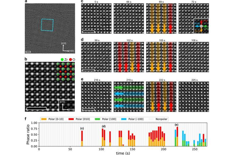 Direct observation of reversible phase transition and polarization switching in ZrO2. Credit: Nature Communications (2026). DOI: 10.1038/s41467-026-70593-y